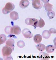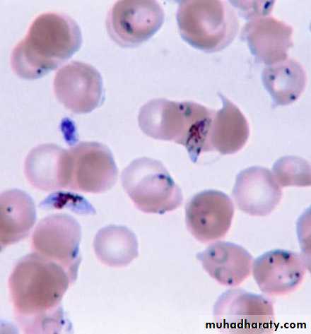 Ring-forms and gametocytes of Plasmodium falciparum in human blood