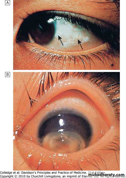 Keratomalacia (softening of the cornea) leads corneal ulceration and necrosis result in corneal scarring