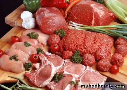 Poultry, pork, and beef, if the meat is prepared incorrectly or is infected with the bacteria after preparation