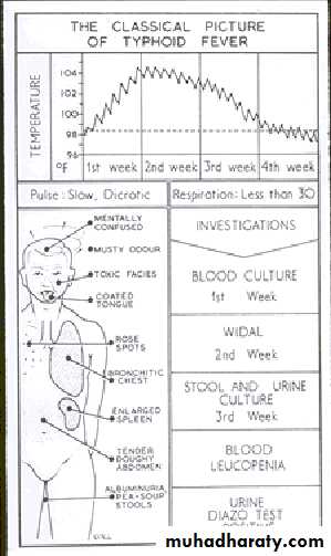 One third of affected individuals develop a macular rash on the trunk.By the end of third week, the fever starts subsiding (defervescence).
