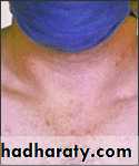 Typhoid Fever (Rose Spots) on chest and upper abdomen