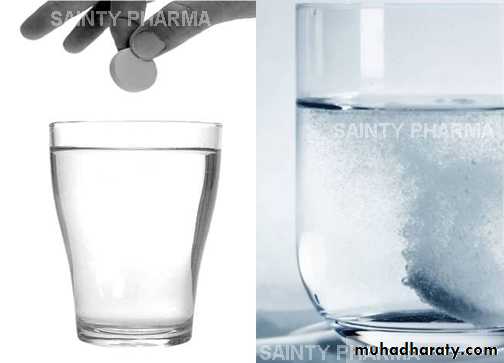 all irregular particles of drug, sugar & inert adjuvant stirred in water before taking4.Effervescents tablet or granules:-