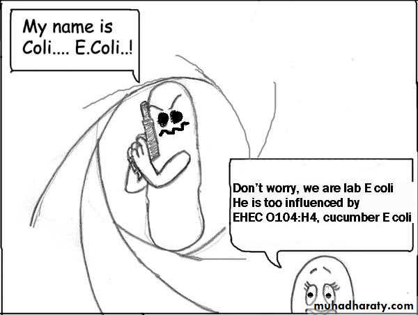 (O157:H7) MOST COMMON, (O104:H4)= CUCMBER E.COLI