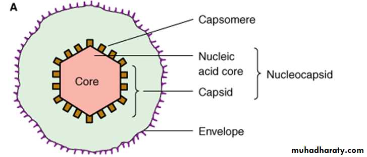 6-The viral envelope is acquired as the virus exits from the cell. Enveloped viruses are more sensitive to heat , detergent ,&lipid solvents.7-The surface proteins are the targets of antibody .