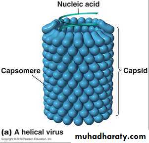 4-The capsomeres give the virus a symmetric appearance.Some have spherical (Icosahedral) symmetry whereas ,others have helical symmetry.