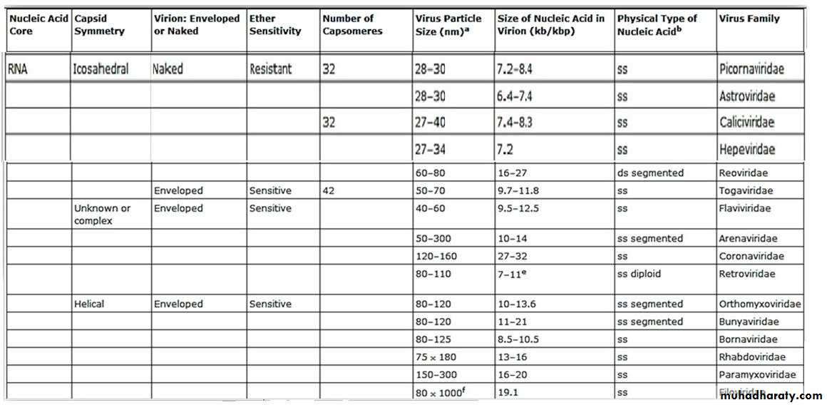 1-Viruses range in size from(20-300nm).2-The genome of viruses either DNA or RNA single –stranded or double –stranded, linear or circular.