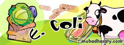 • Enterohemorrhagic strains: bovine fecal contamination (raw or under cooked beef, milk, apple juice from fallen apples).