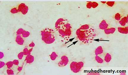 Gram stained smears of urethral or endocervical exudate reveal many diplococci within pus cells. In MALE, the finding of numerous neutrophils containing gram negative diplococci in a smear of urethral exudate permits a provisional diagnosis of gonococcal infection and indicates that the individual should be treated. In contrast, a positive culture is needed to diagnose gonococcal infection in FEMALE.