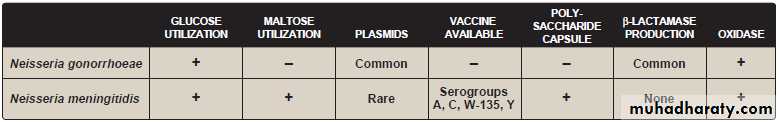 Differential bacteriologic features of Neisseria gonorrhoeae and Neisseria meningitidis.