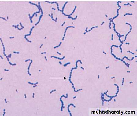 G+ve cocci, arrange in chains or pairs. (Fig.1)Some strains are capsulated, which are important in pathogenicity.