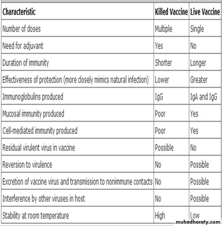 3- Comparison of Characteristics of Killed and Live Viral Vaccines.