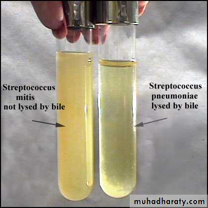 • Pneumococci is bile soluble.