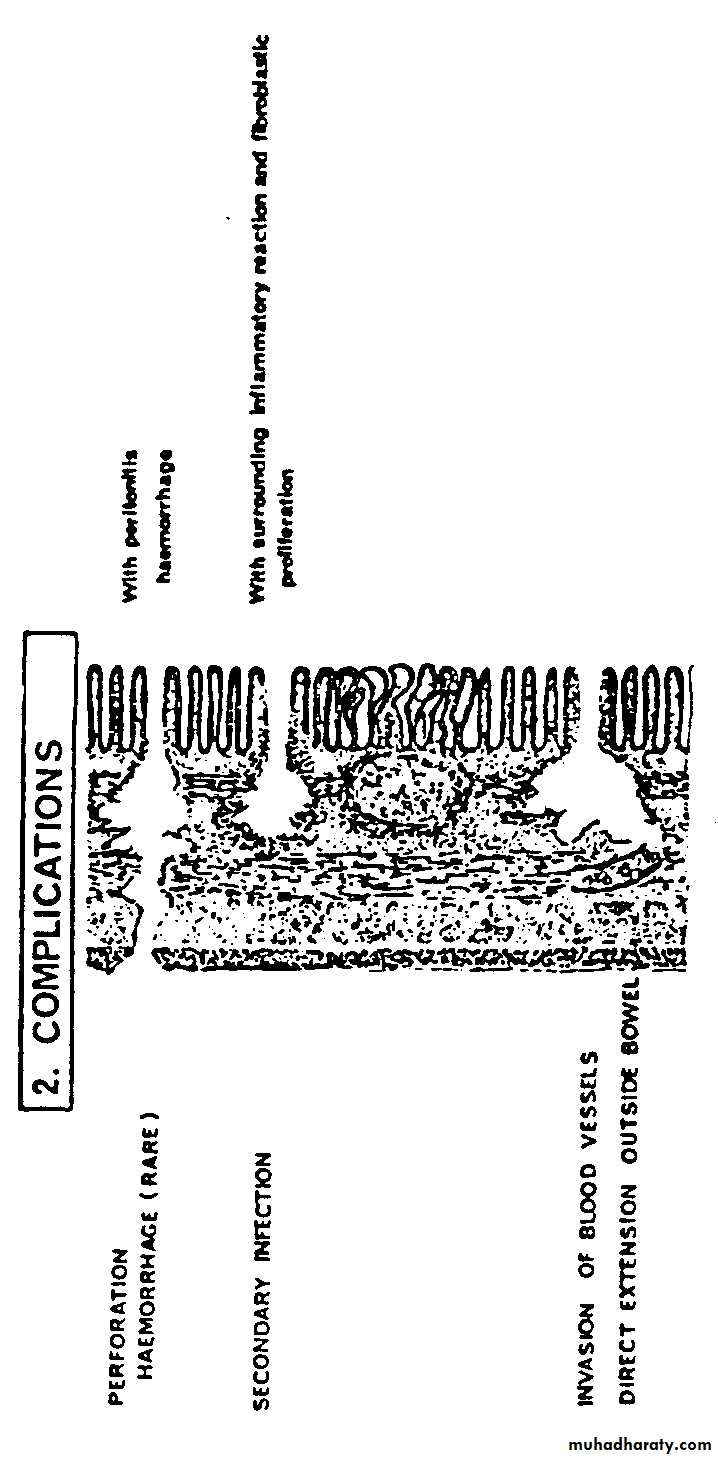 -Complications of E. histolytica infection includes ;appendicitis ,perforation,Peritonitis ,hemorrhage,amoeboma and extra-intestinal amoebiasis.