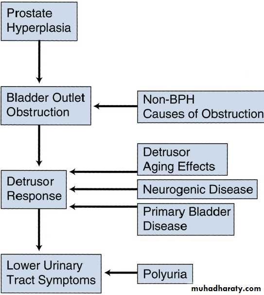 It’s urodynamic concept of low flow rates and high intravesical pressures.The complex of symptoms referred to as lower urinary tract symptoms (LUTS) is not specific for BPH.
