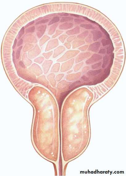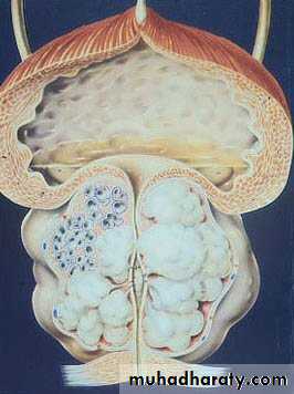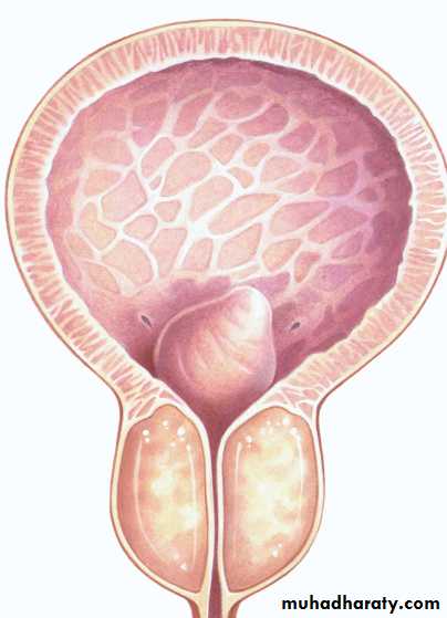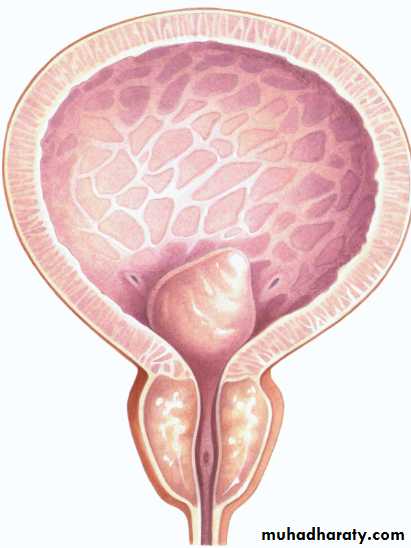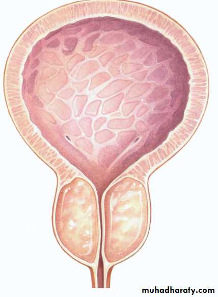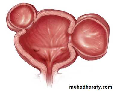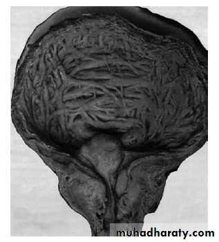 • 2) The secondary response of the bladder to the outlet resistance (detrusor instability & low bladder compliance, trabeculation & diverticulae formation in the wall of the bladder & ultimately causes bladder decompensation).