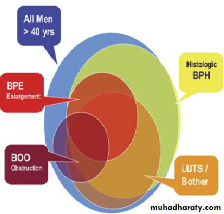 BPH: Is a histologic diagnosis & doesn’t necessarily implies prostatic enlargement (BPE)or presence of symptoms.