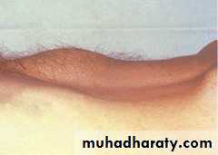 Usually normal.Distended bladder.