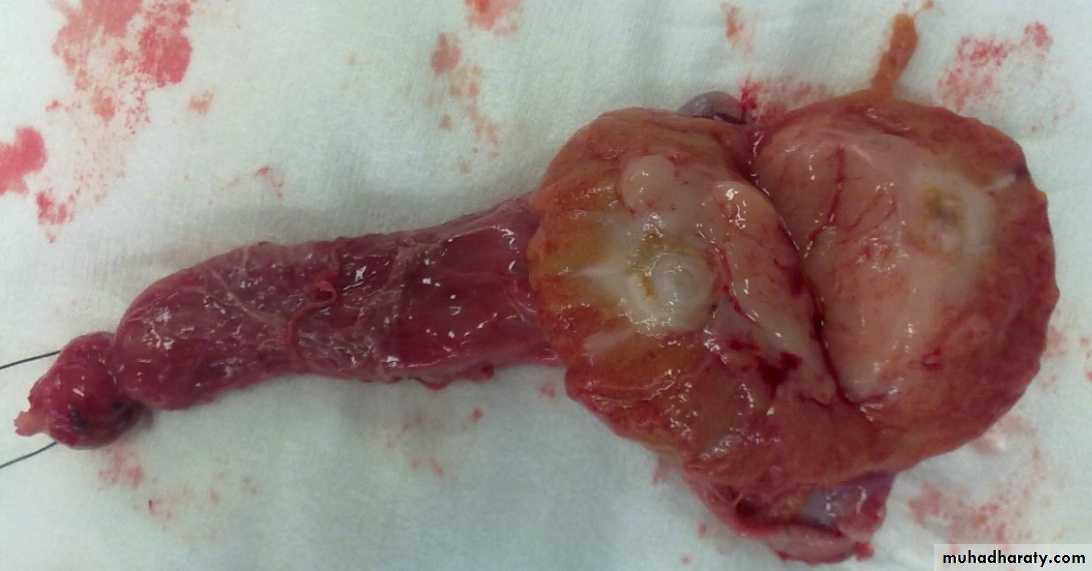 The testis lie transversely high and the tender twisted cord can be palpated above it.
