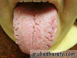 Syphilitic glossitis at any stage of the disease 1ry ,2ry and 3ry.