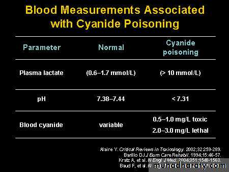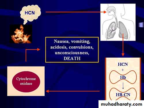 Common final pathway for cyanide intoxication is cellular hypoxiaMetabolic acidosis: nonspecific symptoms