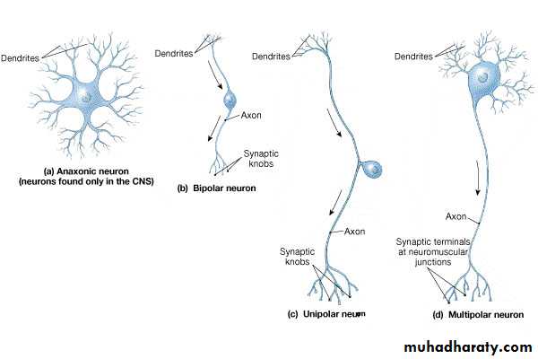 Axons – conduct impulses away from the cell body (only 1!)