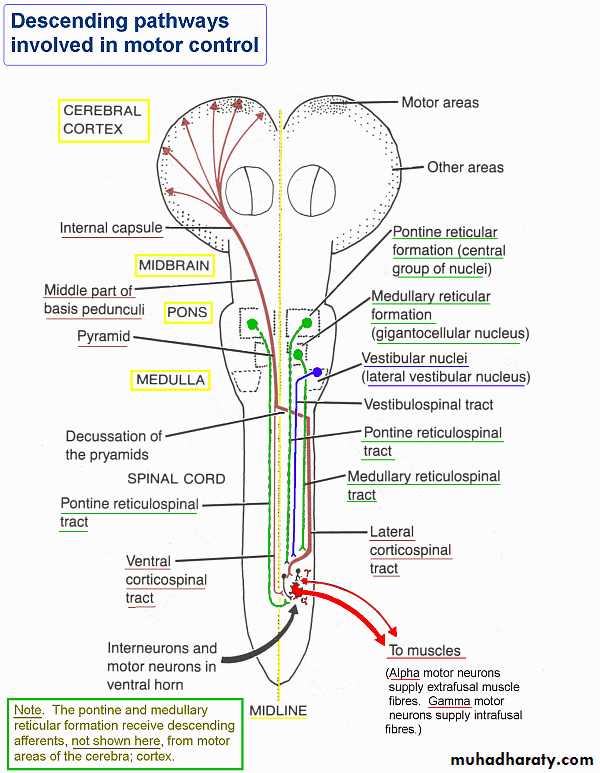 Descending fibers: motor instructions from brain to spinal cord