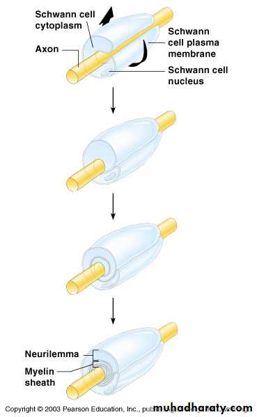 Schwann cells – produce myelin sheaths in jelly-roll like fashion