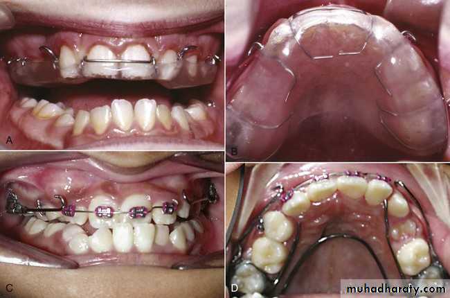 Despite the many trial of modifying mand. growth Most of them need future surgery.Mand. Deficiency