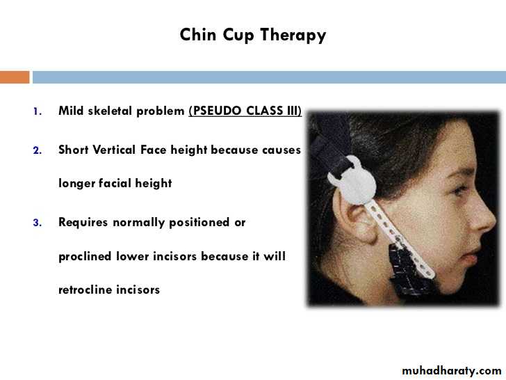Ideal Patients for chin cupMild problem with ability of patient to bring incisors into edge to edge relation.