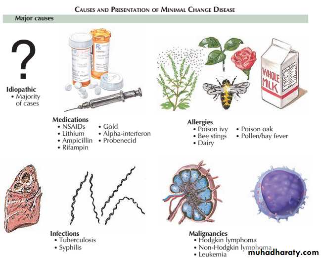 Lecture 2Minimal change disease occurs at all ages but accounts for nephrotic syndrome in most children and about onequarter of adults. It is caused by reversible dysfunction of podocytes.