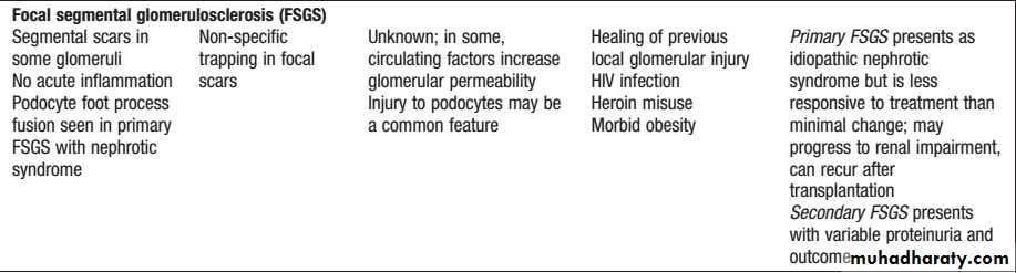 Primary focal segmental glomerulosclerosis (FSGS) can occur in all age groups. In some patients, FSGS can have specific causes, such as HIV infection, podocyte toxins and massive obesity, but in most cases the underlying cause is unknown (primary FSGS).