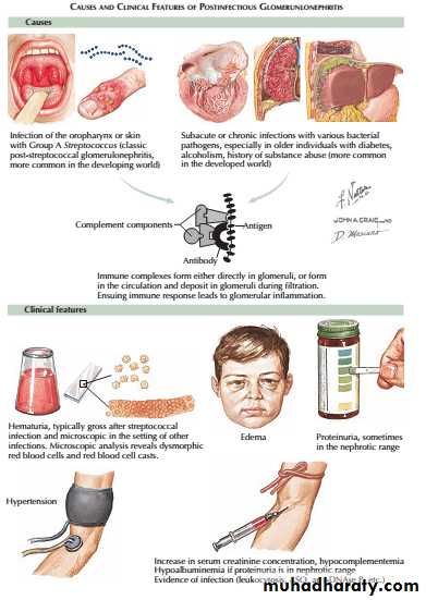 Characteristically, the latency from clinical infection to nephritis is short: a few days or less.