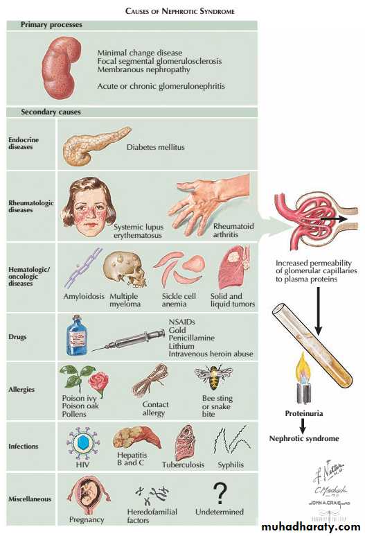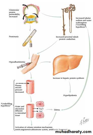 • Hyperlipidaemia :In response to the low serum albumin concentrations, the liver increases its production of numerous proteins, including lipoproteins, leading to hyperlipidemia.