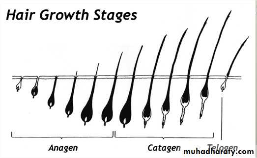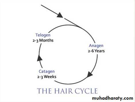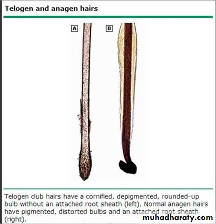 Up to 100 telogen hairs are lost each day from the head, and about the same number of follicles enter anagen.