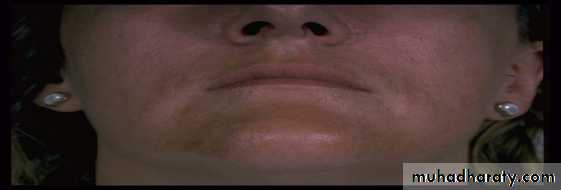 The use of a Wood’s lamp can often be very beneficial in determining the location of melanin deposition showing enhancement of color contrast in lesional skin for the epidermal type, but not the dermal types. The mixed type has enhancement in some areas of lesional skin, but not in other areas.