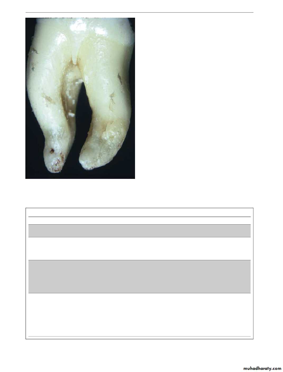 These factors are associated with malformations of tooth development or tooth location. Anatomic factors such as cervical enamel projections and enamel pearls have beenassociated with clinical attachment loss, especially in furcation areas.Cervical enamel projections are found on 15% to 24% of mandibular molars and 9% to 25% ofmaxillary molars, and strong associations have been observed with furcation involvement.