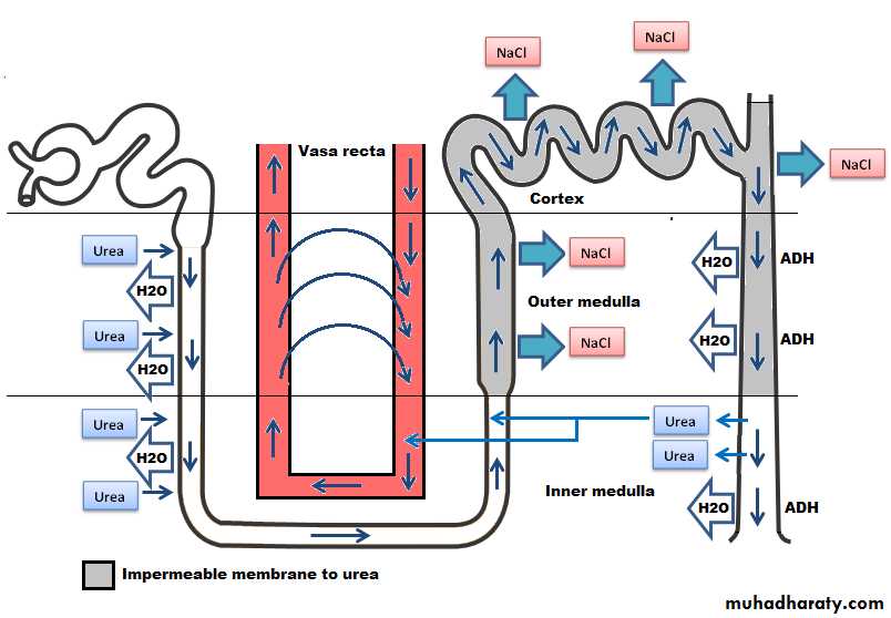 In this way, urea can recirculate deep in the medulla for several times in a way to concentrate urea in the medullary interstitium before it is excreted.