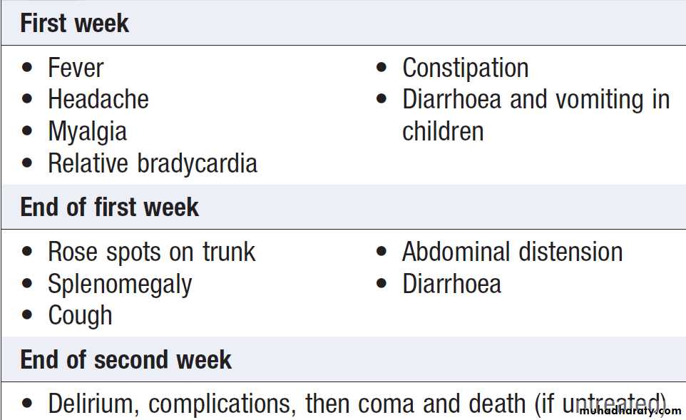 • The course tends to be shorter and milder than that of typhoid fever• The onset is often more abrupt with acute enteritis.