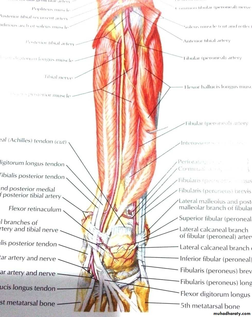 3- Medial and lateral malleolar arteries to the lateral and medial malleoli, the lateral one anastomosed with the perforating branch of the peroneal artery.