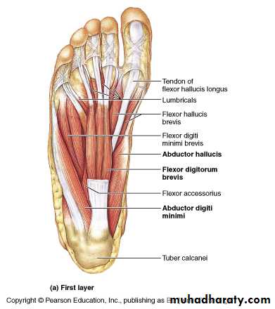 This compartment contains the abductor hallucis and flexor hallucis brevis muscles, the medial planter nerve and vessels, and the first metatarsal bone.The compartment of the little toe