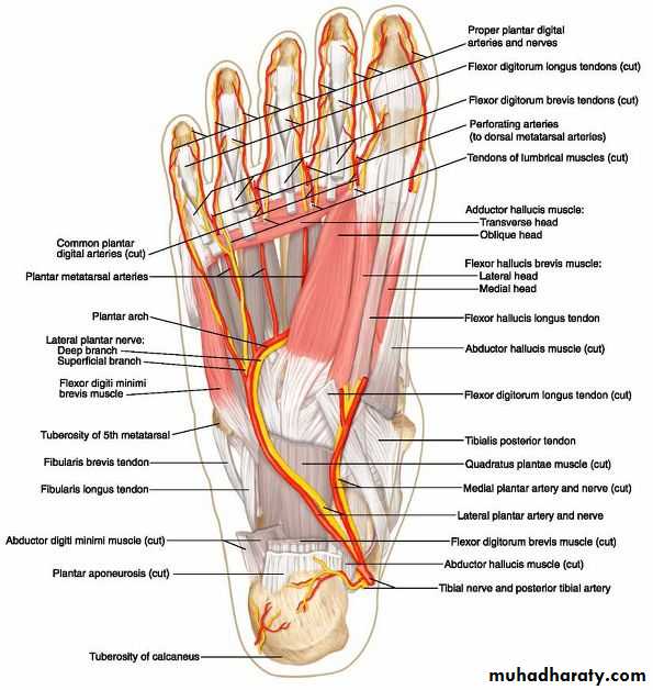 Each planter metatarsal artery gives perforating branches which passes through the interosseous space anastomosed with the corresponding branch of the dorsal metatarsal artery.