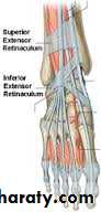 Deep peroneal n.- enters the dorsum of the foot by passing deep to the extensorretinacula