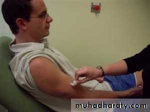 A logical progression is required. You may want to start testing over the shoulder and to move along the lateral aspect of the arm and up the medial side.