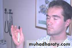 Hold one of your fingertips up in front of and a short distance (about 30-40 cm) from the patient.