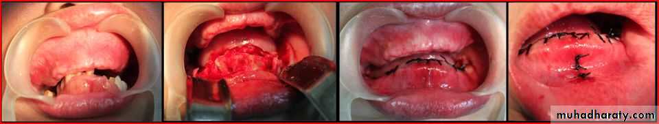 tissues.Frenectomy(surgical removal or resectioning of a frenum): surgery that may be performed on the maxillary labial frenum to correct diastema(a space between two teeth), or on the mandibular lingual frenum to correct ankyloglossia