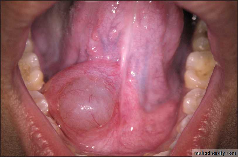 B- Radicular: cyst located alongside or at the apex of a Tooth root; also called periapical cyst.C- Ranula: cystic tumor found on the underside of the tongue or in the sublingual or submaxillary ducts; usually the result of a blocked duct.