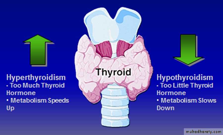 “Hyperthyroidism” refers to overactivity of the thyroid gland leading to excessive synthesis of thyroid hormones and accelerated metabolism in the peripheral tissues. The secretion of thyroid hormone is no longer under the regulatory control of the hypothalamic-pituitary center.Hyperthyroidism