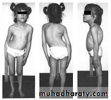 Musculoskeletal deformities :progressive scoliosis, foot deformity pes cavus, pes equinovarus