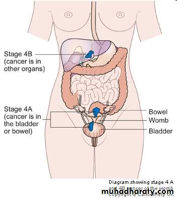 IVA: invades bladder/bowel mucosaIVB: distant metastasis