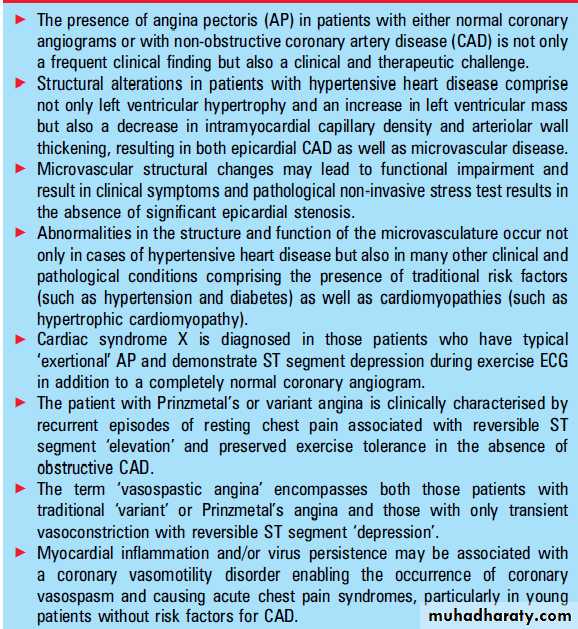 overlapping) pathophysiologies causing symptomsof AP in the absence of obstructive CAD are